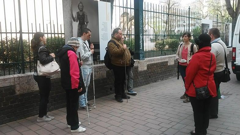 A megjelölt napon az 56-os események nyomába eredtünk az Imagine Budapest egyik kedves munkatársa és az ő általuk elkészített Péter fiktív naplója segítségével. A program meghirdetésre került látássérültek részére, ekkor támadt az ötlet, hogy csatlakozzunk.