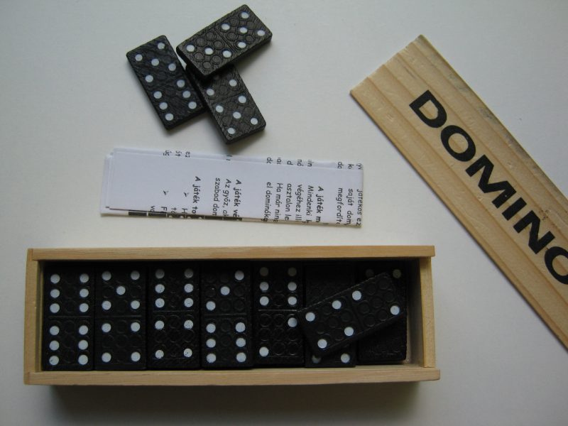1 doboz 28 darabos fából készült dominó, melynek ára 340 forint helyett 250 forint.